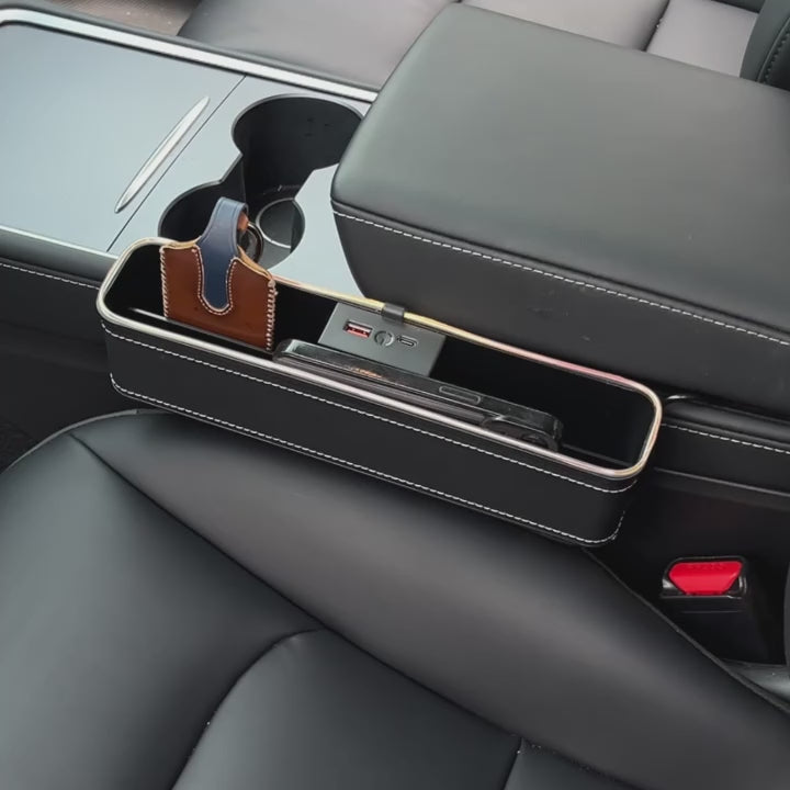 PU Leather Car Seat Gap Filler Organizer with Light & USB Charging – Auto Emporio By Burhani Car Accessories